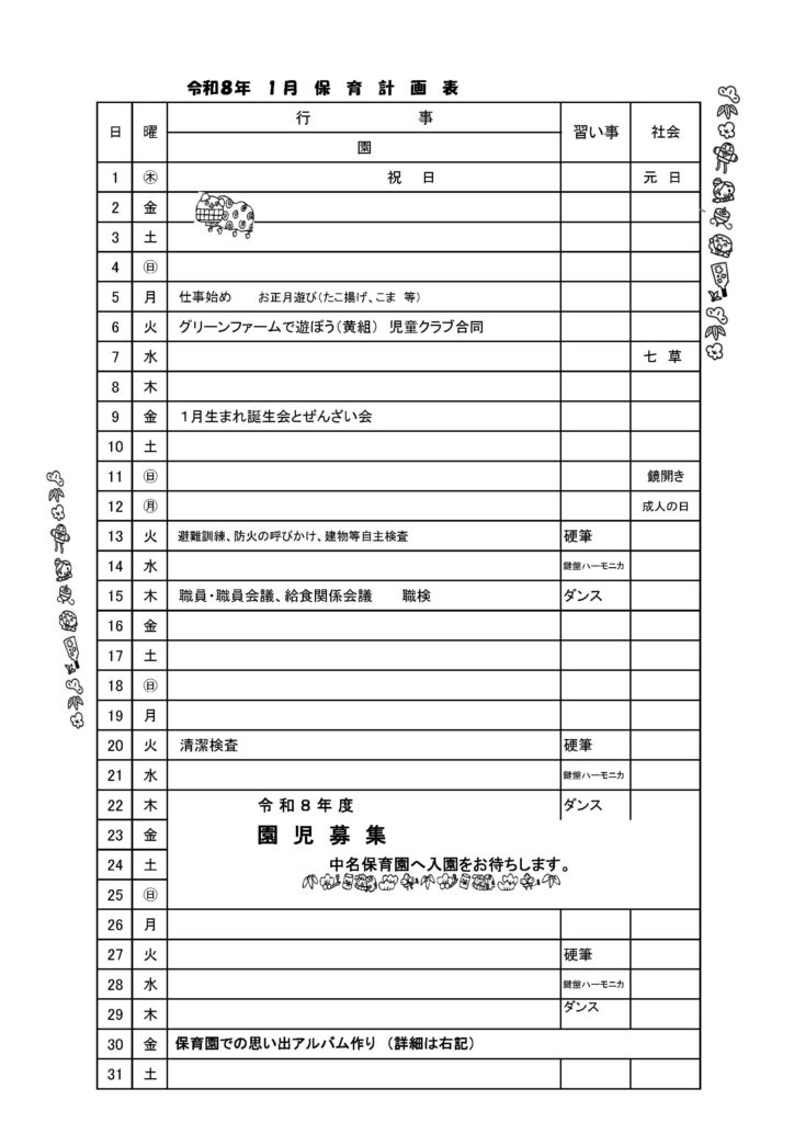 今年1年も中名保育園運営へのご理解とご協力をいただき、ありがとうございました。