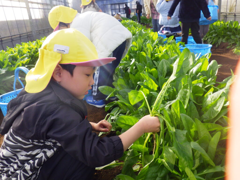 グリーンファームでほうれん草の収穫体験やピザづくり体験をしたり、遊具やアスレチックで遊んだりと、