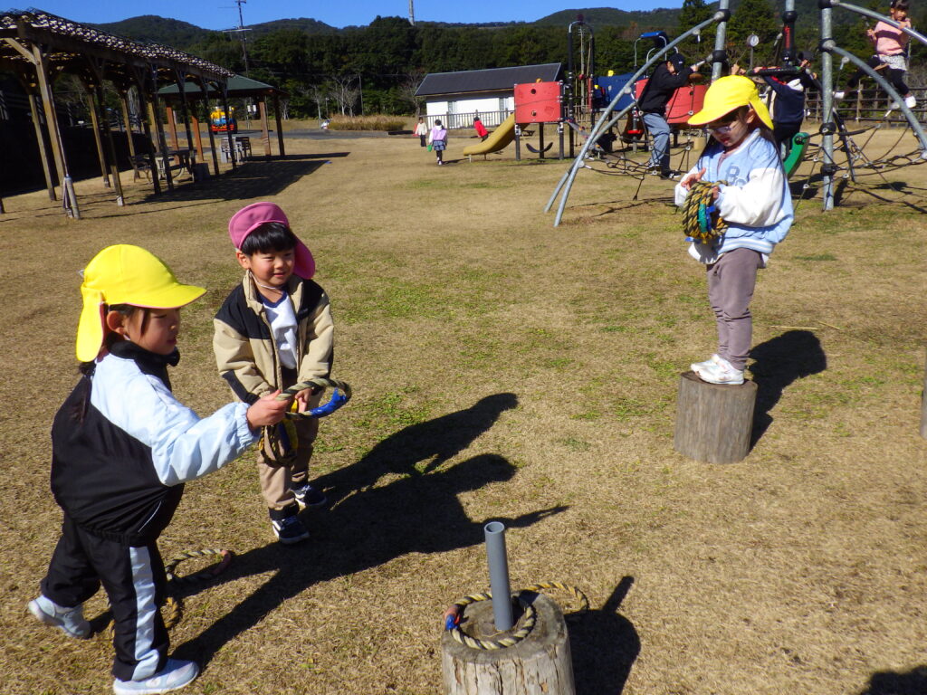 凧あげやカルタとりなどの正月遊びを楽しんだり、黄組の園児たちは児童クラブの子ども達と一緒に