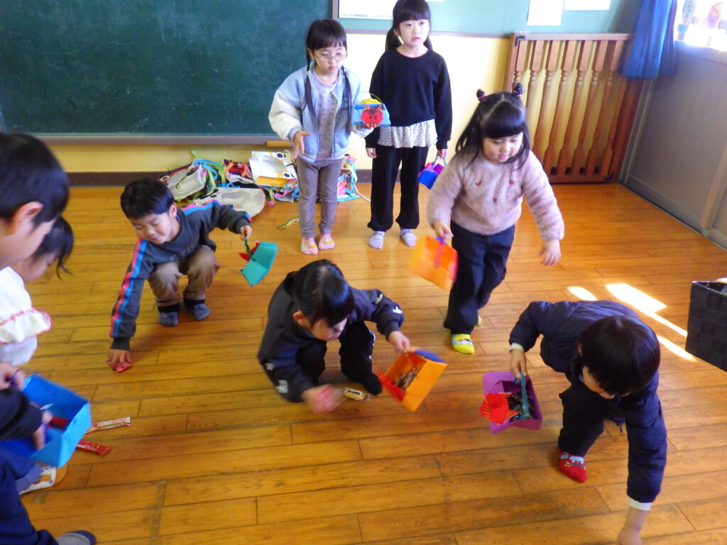 そしてそのあとは、楽しい楽しい豆まき🎵 大好きなお菓子を一生懸命拾っていました😊